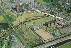 全国的に、「日本一の芋煮会」で有名な「馬見ヶ崎川」の右支川に位置する村山高瀬川は、高瀬地区を北西に流れ、平野部では西流し、長町地内で野呂川を合わせ馬見ヶ崎川に合流する1級河川であり、農業用水や豊富な地下水の供給源になっています。また、昔から暴れ川として有名であり、築堤や災害復旧による護岸工事等により部分的な対応を行ってきましたが、昭和58年から抜本的に事業を進め、50年に1回の洪水に対して安全となるよう計画されました。また河川改修事業と併せて親水空間整備の考えを取り入れ、都市公園、親水河川のほか、病院や学校を一体的に整備した「健康の森公園整備事業」と一体となって整備進め、水と緑と健康に囲まれた開放感のある安らぎを与えてくれる空間となりました。休日には親子連れなどで賑わい、また最近では病院のリハビリコースの1つとして使用されるなど、新しい山形の人気スポットとして期待されています。 |