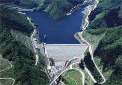 綱木川ダムは、一級河川最上川水系綱木川の山形県米沢市大字簗沢に位置し、洪水調節、流水の正常な機能の維持及び水道用水を目的とした多目的ダムです。昭和54年度に予備調査に着手し、昭和63年度に建設採択を受けて以来、29年間に及ぶ歳月をかけて平成19年度に完成しました。綱木川ダムは、堤高74.0m、堤頂長367.5m、堤体積2,155,000m3、総貯水容量955万m3、総事業費486億円の中央コア型ロックフィルダムです。綱木川ダムの建設にあたっては、コスト削減、施工の効率化・円滑化、ライフサイクルコスト低減及び住民参加等に取り組んできました。フィルダムとしては、日本で初めてプレキャスト埋設型枠(逆U字型)を採用し、工期の短縮と施工の安全確保・省力化を図りました。また、洪水吐きコンクリート打設において、連続・自動打設ができるタワーベルトコンベアを採用し、施工の効率化・品質の向上を図りました。 綱木ダムのキャッチフレーズは「置賜の水と緑と安全を守る綱木川ダム」であり、NHK大河ドラマ「天地人」の直江兼続公が礎を築いた米沢市を中心にした置賜地域で重要な役割を担っています。今後とも兼続公の地域を愛する精神を受け継ぎ、地域発展に貢献していきたいとの思いを強くしています。 なお、本事業は平成20年度の全建賞を受賞しました。 |