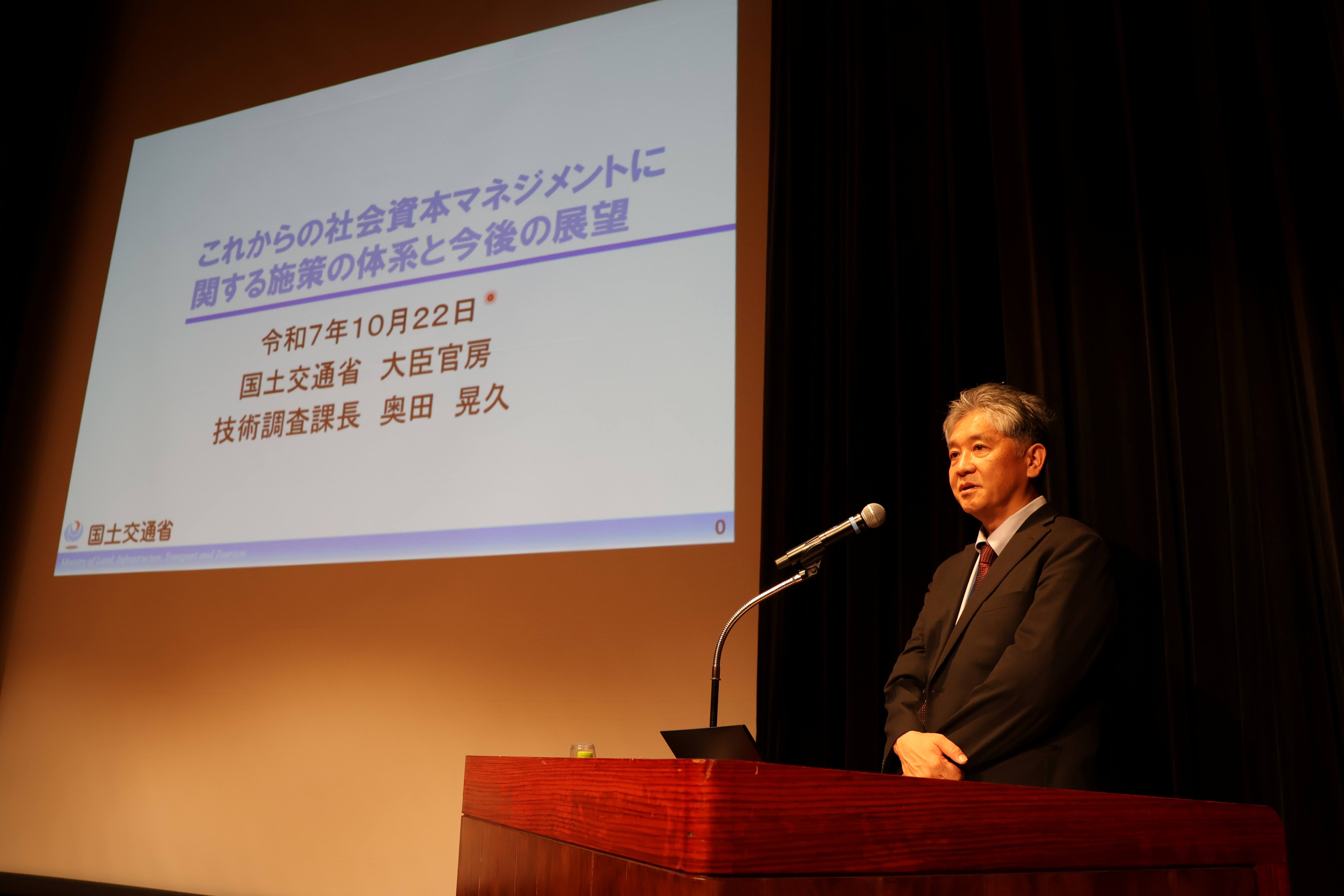 ![]() 講演「これからの社会資本マネジメントに関する施策の体系と今後の展望」 国土交通省大臣官房技術調査課長 奥田 晃久氏 |