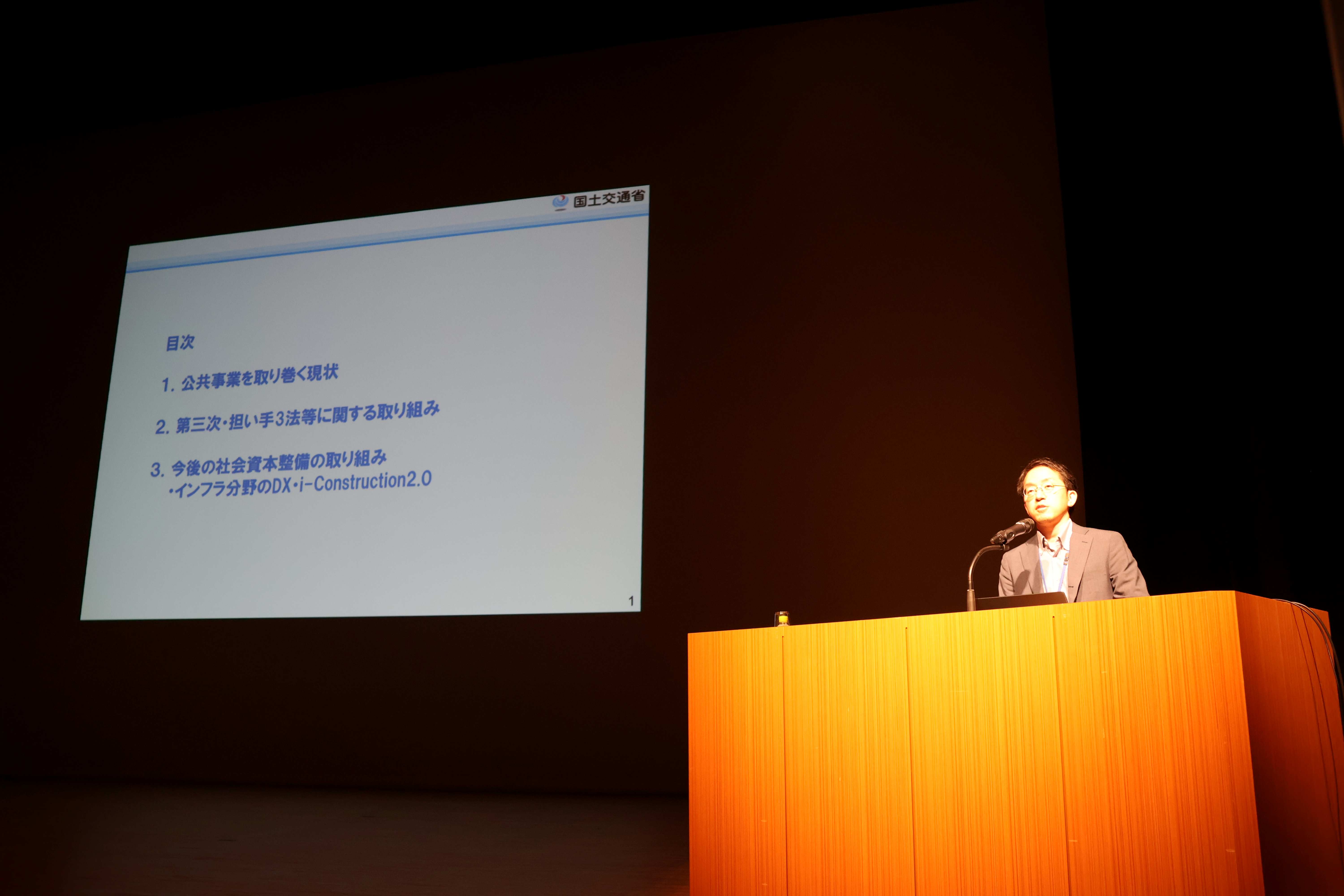 ![]() 講演「公共工事の品質確保と今後の展望」 国土交通省大臣官房技術調査課建設技術調整室課長補佐 川面 顕彦氏 |
