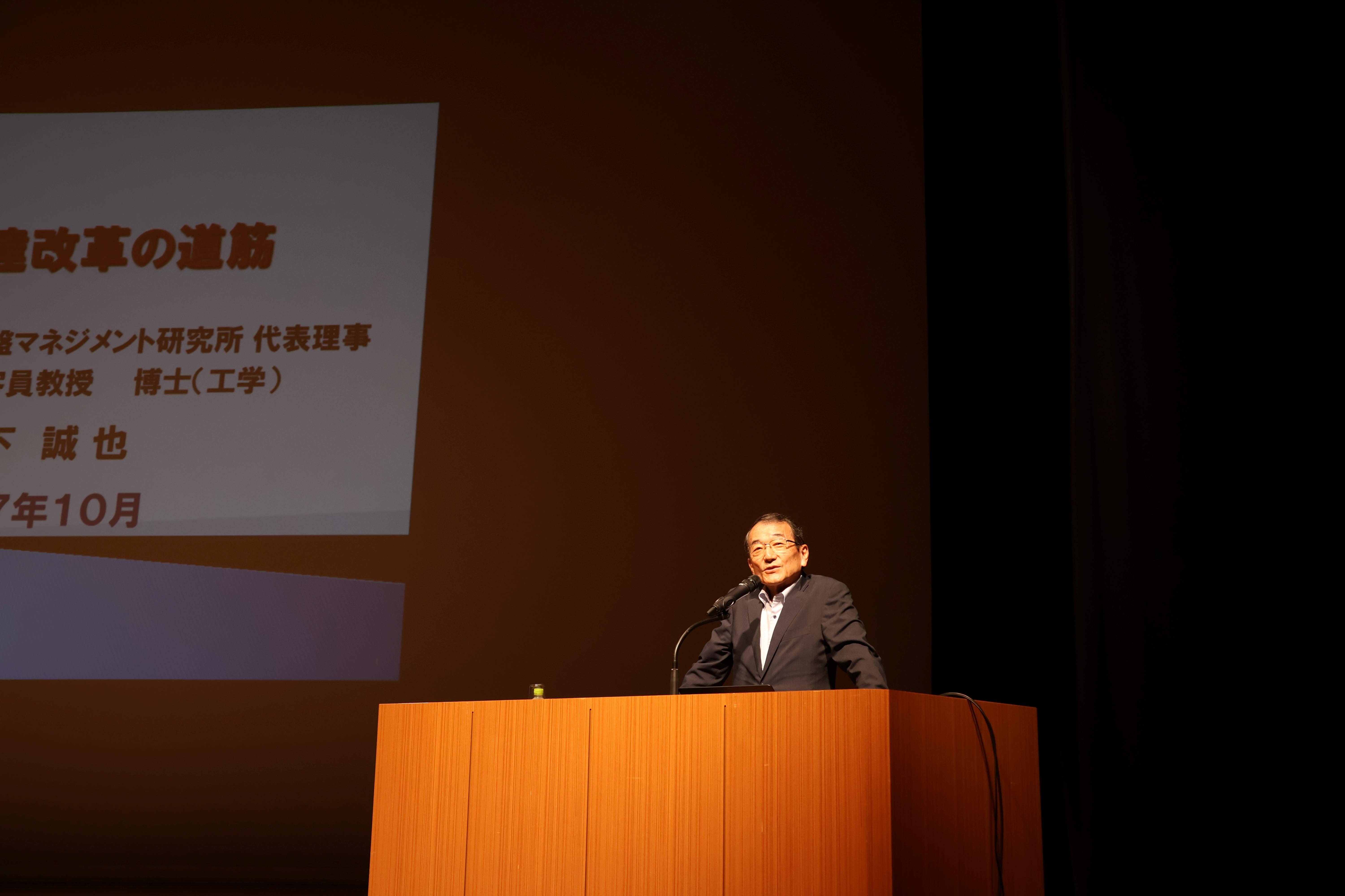 ![]() 講演「公共調達改革の道筋」 (一社)社会基盤マネジメント研究所代表理事 木下 誠也氏 |