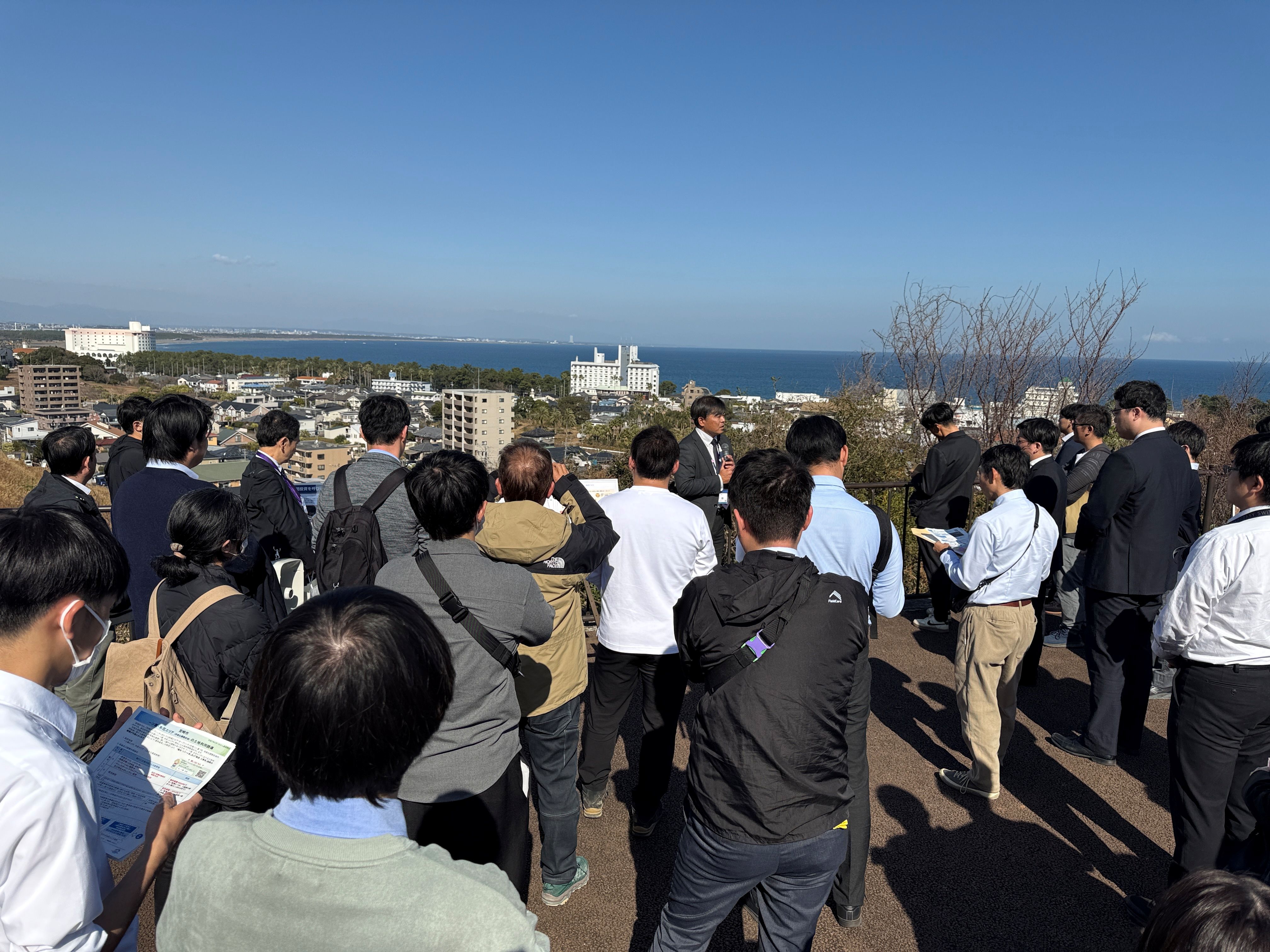 ![]() 「先進的なまちづくりの事例説明(青島パーキング展望台)」視察の様子 |