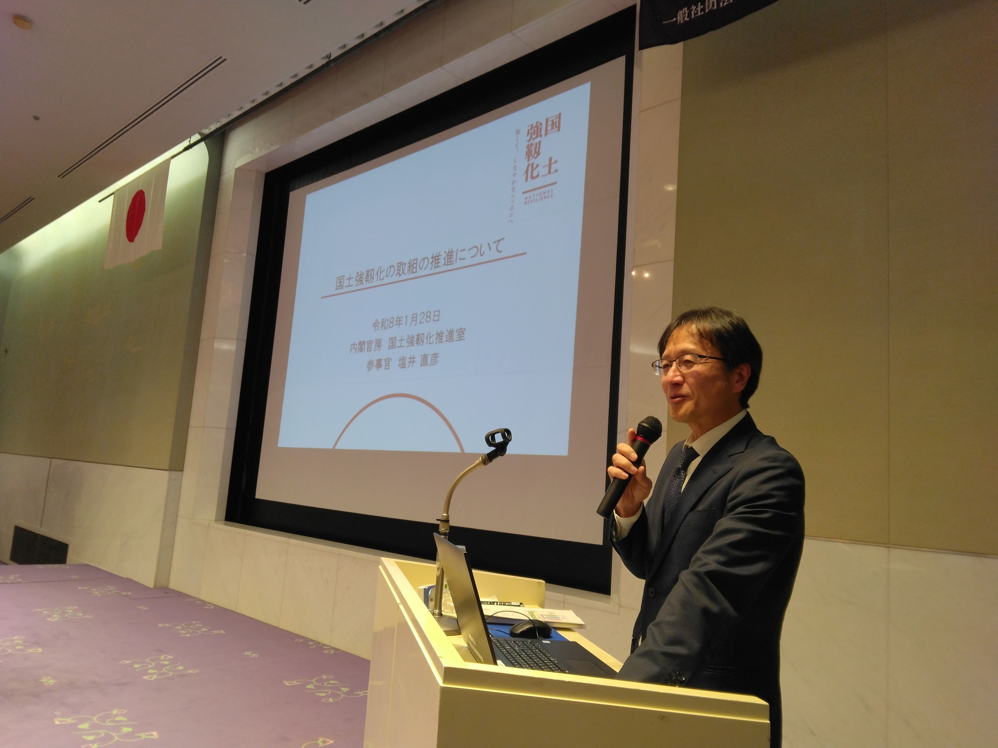![]() 講演「国土強靱化の取組の推進について」 内閣官房国土強靱化推進室参事官 塩井 直彦氏 |