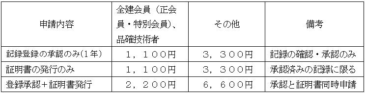 ○各種料金の振込先/送付先 ※振込手数料は利用者の負担となります。 【郵便振替の場合】 口座番号:00150−1−4928 口座名義:一般社団法人 全日本建設技術協会 ※通信欄に「CPD」と入れてください。 【銀行振込の場合】 銀行名・支店名:三菱UFJ銀行赤坂見附支店 口座番号:(普通)0378249 口座名義:一般社団法人 全日本建設技術協会 シャ)ゼンニホンケンセツギジュツキョウカイ ※インボイス領収書の発行依頼については soumu@zenken.com (総務課経理担当)までお問い合わせ下さい ○利用者登録料・利用料(税込み) ![]() なお、一度納付された登録料・利用料は、途中で利用を中止した場合でもお返しすることができません。 【利用料等について】(上表、「Bその他」の利用者) 利用料は、利用者登録申請を 行った月の翌月から発生し、直近の3月までの分を利用者登録料とともにお支払い下さい。 利用料の年額を12で割った額に直近3月までの月数を掛けた額が初年度利用料額となります。 【例】11月に利用者登録ををする場合 〔年間利用料〕4,800円/12= 400円×4(ヶ月分)=1,600円(※初年度利用料額) ※初年度利用料1,600円+利用者登録料1,100円=2,700円 ↓ 利用者登録時の支払い金額 なお、次年度分につきましては、登録後最初の3月初旬までに請求書を送りいたしますので、3月末までにお振込み下さい。 (お振り込みがない場合、3月末で利用停止されます。) (3)CPD記録登録の承認・証明について ○CPD記録登録の承認 全建がCPD利用者によって自己登録された記録の確認を行い適切と判断したCPD記録について、正式に「登録」されたCPD記録として「承認」します (WEB操作は、ガイドブック参照)。 ○CPD記録登録証明書の発行 利用者は、CPD記録登録の証明が必要な場合は、Webシステムから申請を行うことができます(WEB操作は、ガイドブック参照)。 ○CPD記録の登録承認及び登録証明書発行手数料(税込み) ![]() 証明書の発行は不要です。 (4)CPDシステム ![]() |