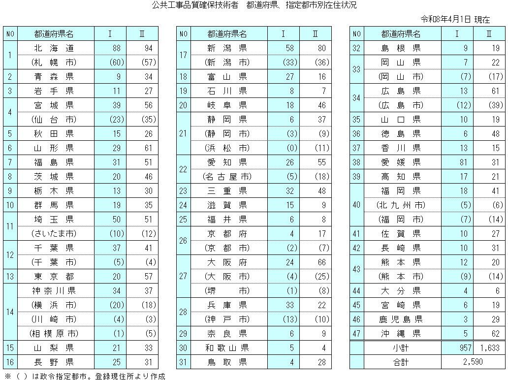 ●品確技術者登録状況(都道府県、政令市別)