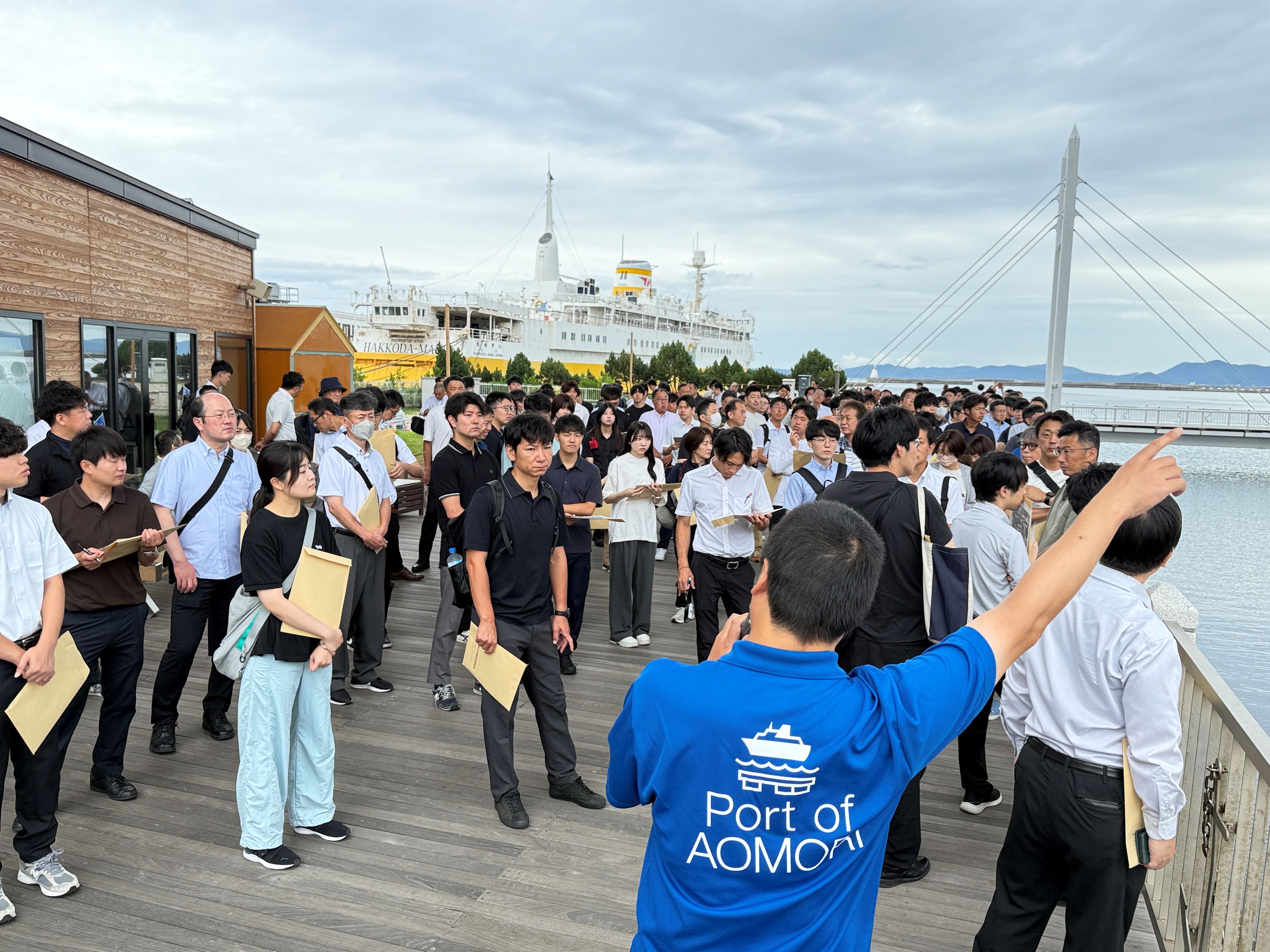 ![]() 「青森港海域環境創造事業(あおもり駅前ビーチ)」視察の様子 |