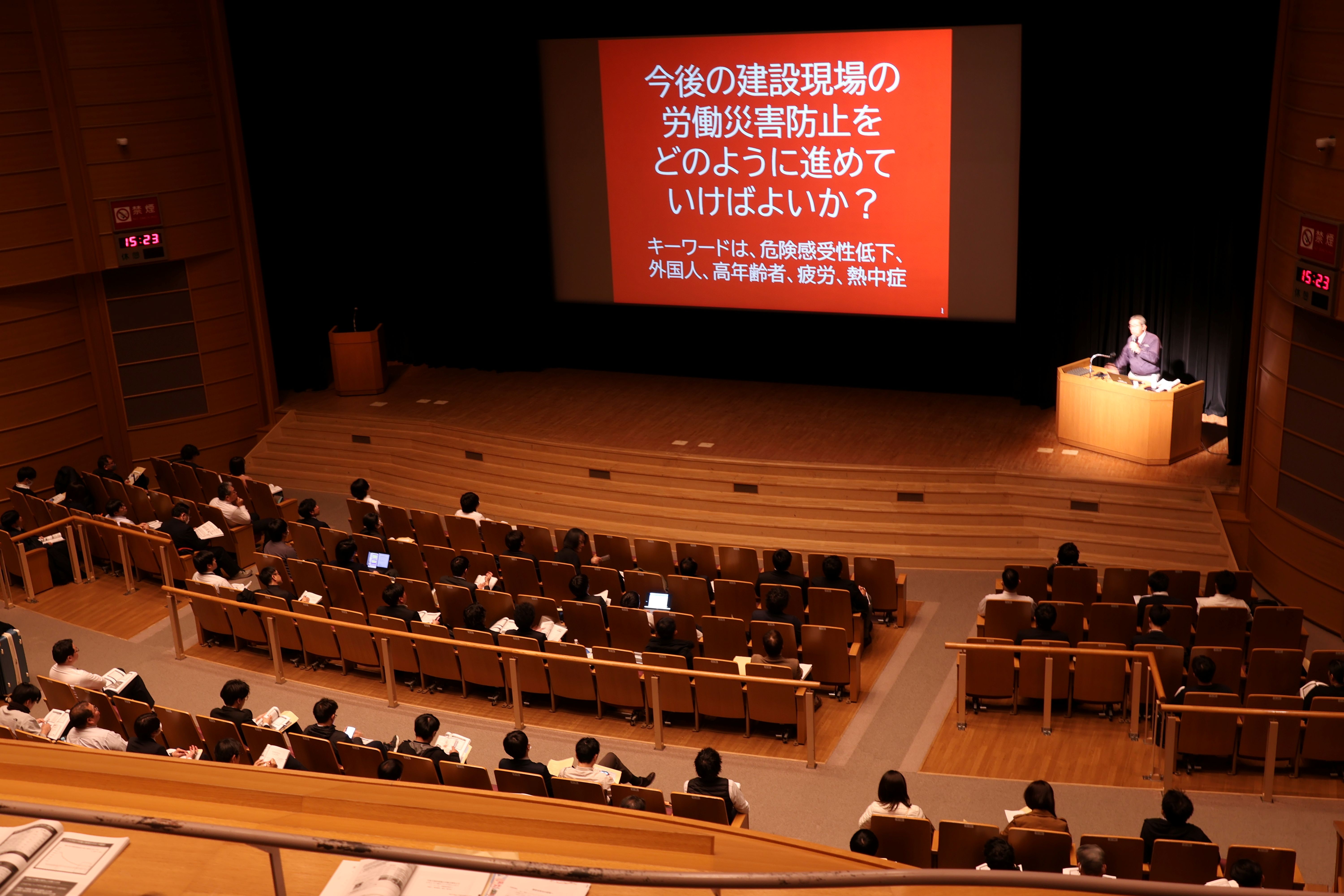 ![]() 講演「今後の建設現場の労働災害防止をどのように進めていけばよいか?」 独立行政法人労働者健康安全機構 労働安全衛生総合研究所 特任研究員 高木 元也氏 |