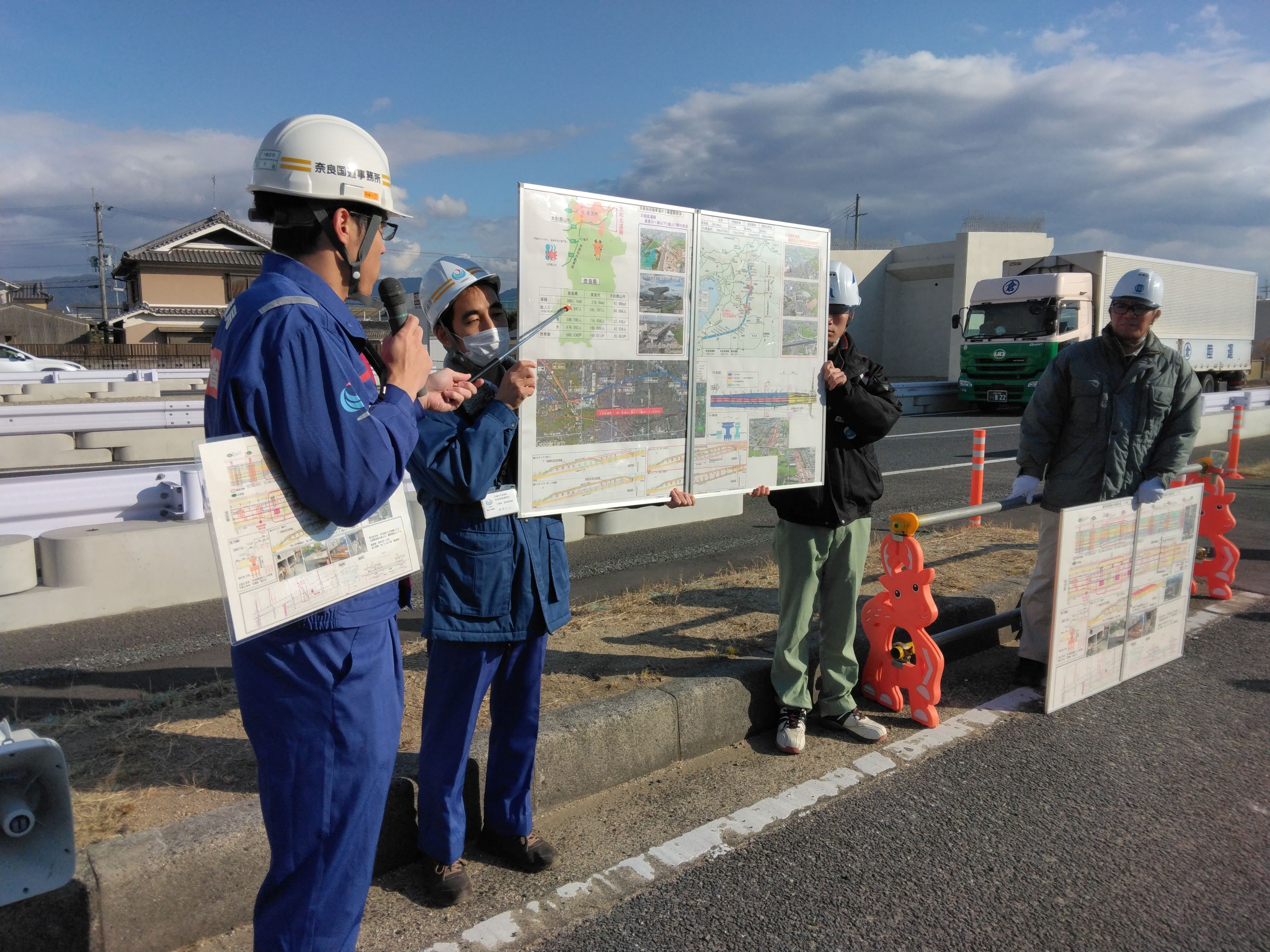 ![]() 「京奈和自動車道 大和北道路((仮称)奈良IC〜郡山下ツ道JCT)整備事業」視察の様子 |